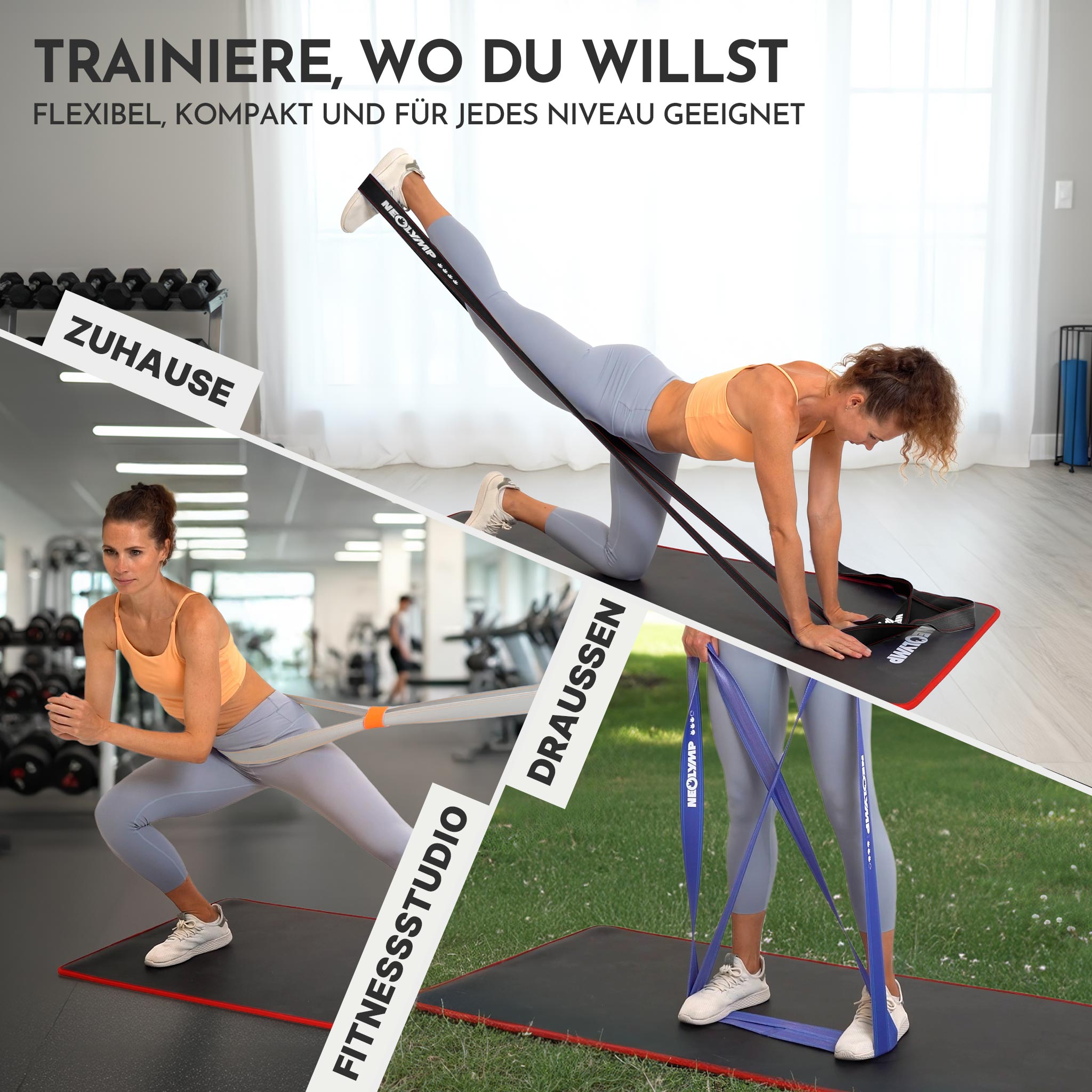 Die NEOLYMP Fitnessbänder sind dank ihrer robusten Konstruktion extrem reißfest und halten selbst hoher Belastung im intensiven Training stand.