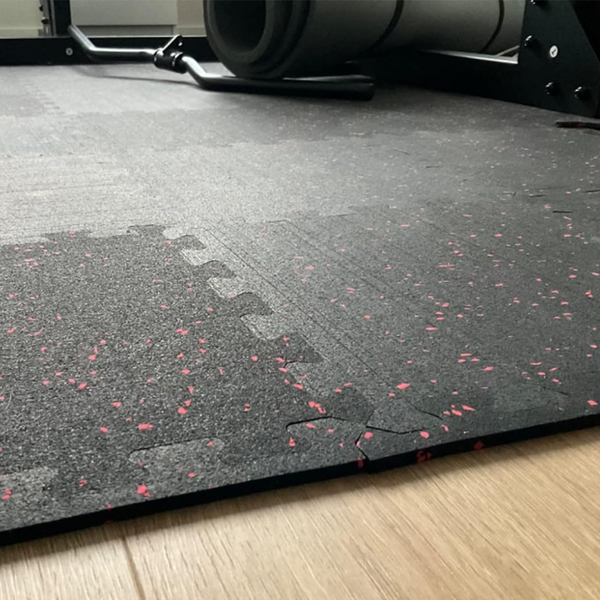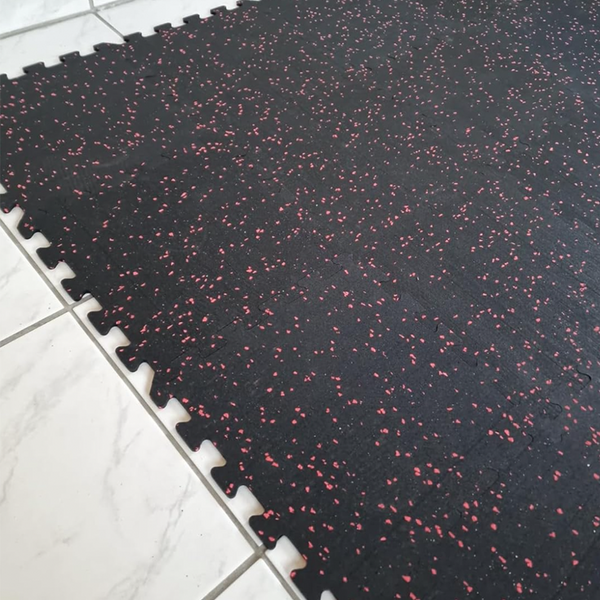 The natural rubber sports floor dampens noise and shocks. The fitness mat is non-slip, free of harmful substances, and environmentally friendly, ideal for all types of flooring. The puzzle mat is also compatible with underfloor heating.