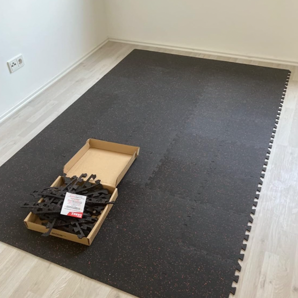 Secure the sturdy NEOLYMP natural rubber floor protection mat! The puzzle mat is extra heavy, sound-absorbing, joint-friendly, and non-slip. Rely on the durable and pollutant-free natural product.