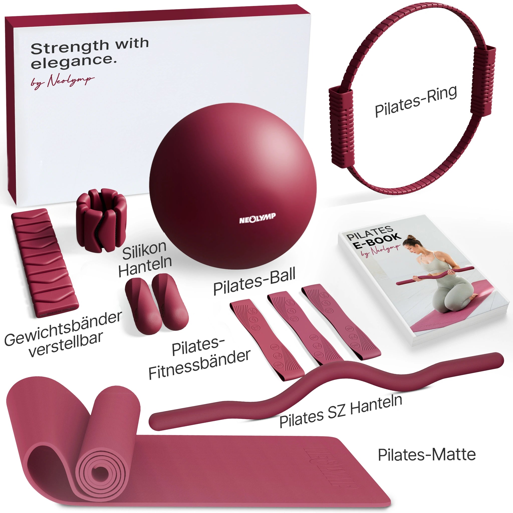 Alle Komponenten des Pilates Sets bestehen aus hochwertigen, hautfreundlichen Materialien, die Funktionalität und Stil vereinen.
