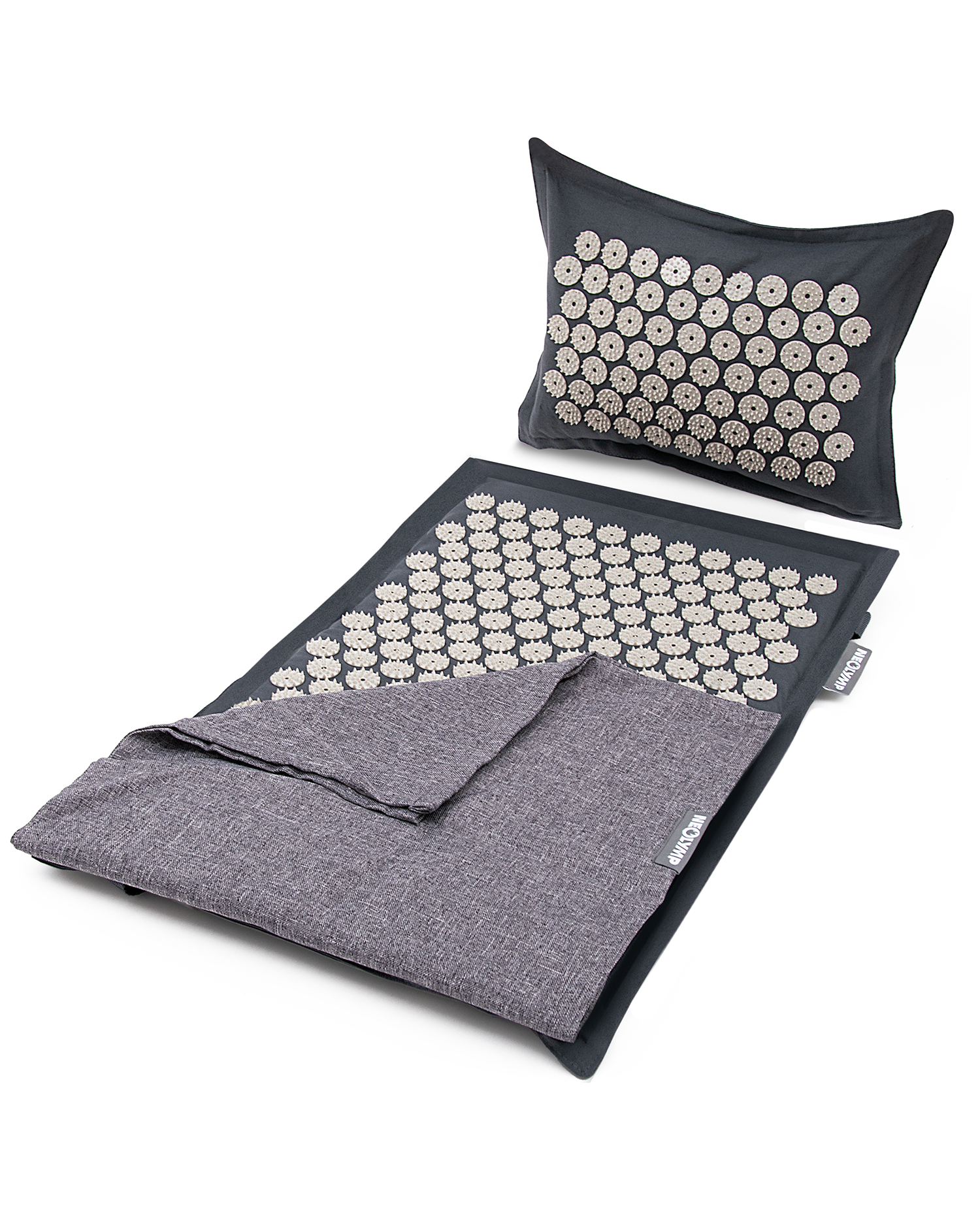Akupressurmatte mit Kissen inkl. Stuhlbefestigung & Tragefunktion – Grau-Anthrazit (B‑Ware)
