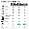 Das absolute Power-Paket! Dieses Set kommt mit allem bereits gelisteten Zubehör und zusätzlich unseren Dip Barren. Ab sofort trainierst du Brust, Bizeps und Schultern in zusätzlichen Varianten!