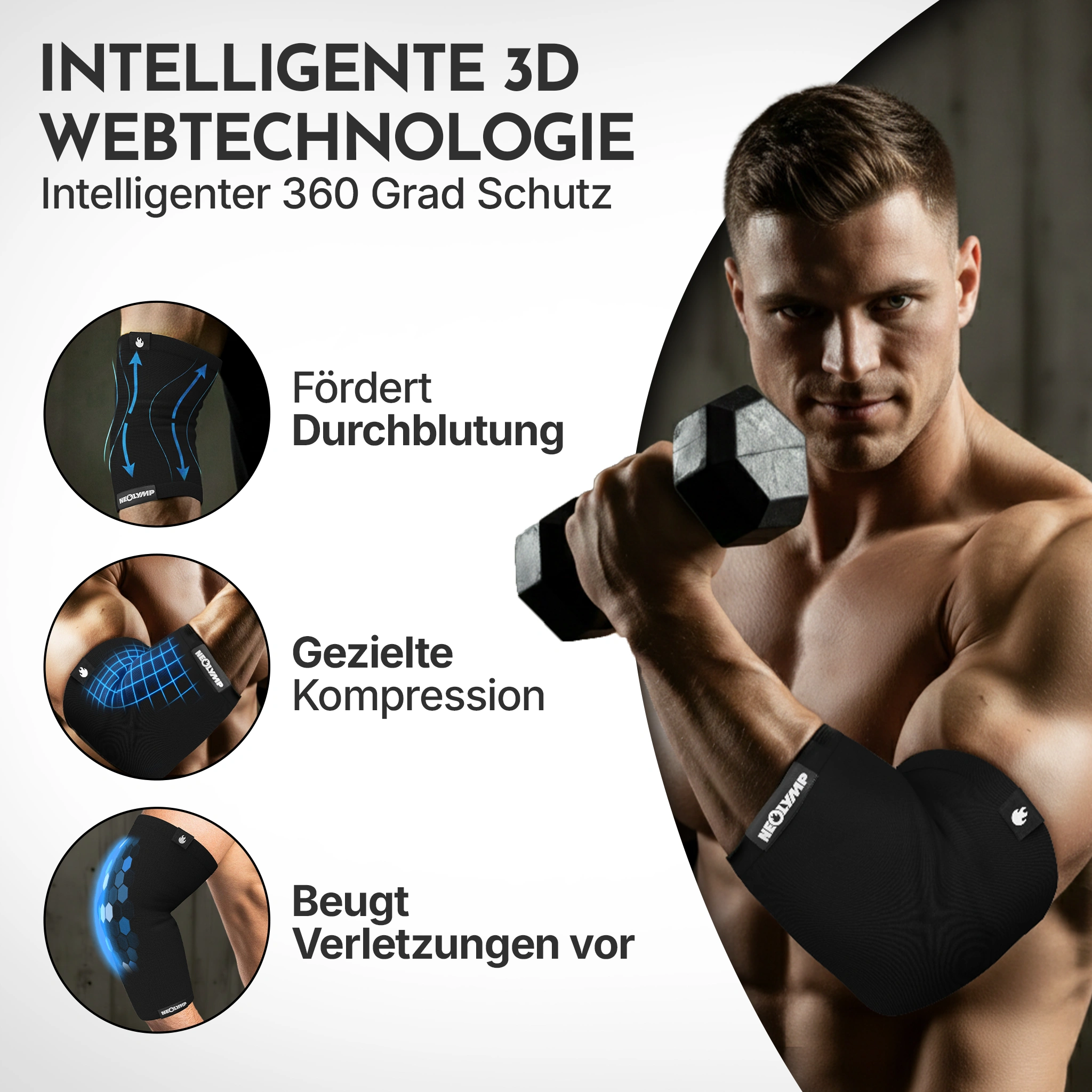 Die Ellenbogenbandage bietet optimale Stabilität bei Übungen wie Dips, Push-Ups und weiteren Kraftübungen. Sie schützt vor Überlastungen und unterstützt die Regeneration bei Tennisarm und Golferarm, damit du dein Training ohne Einschränkungen fortsetzen kannst.Ideal für vielseitige Anwendungen