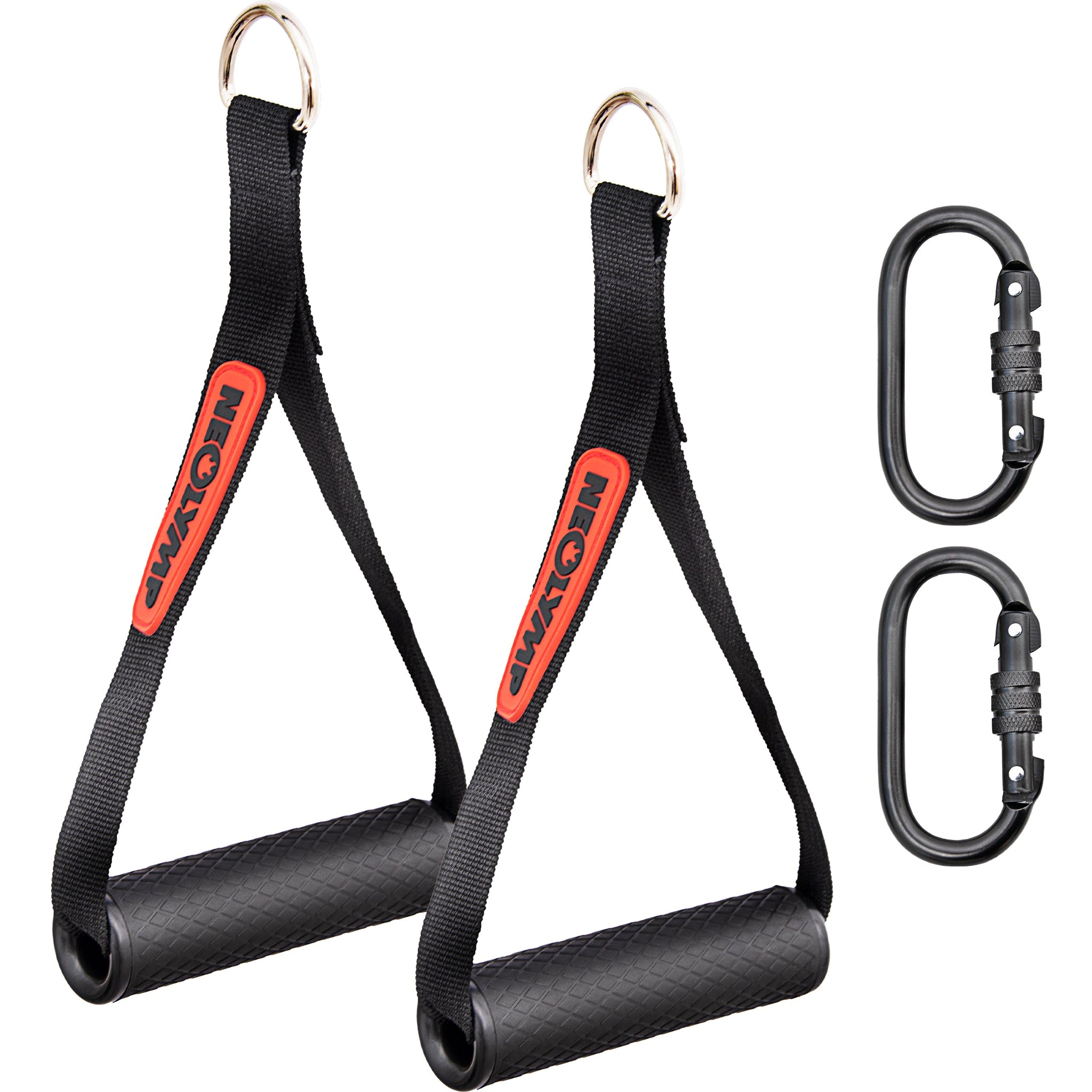 Unsere Griffe sind die ideale Ergänzung für Deine Widerstandsbänder, Kabelzug- oder Seilzugübungen. Dank der mitgelieferten Stahlkarabinerhaken kannst Du die Griffe mühelos anbringen und sofort loslegen. Erlebe ein intensives Training, das sowohl Deine Koordination als auch Deine Muskelkraft effektiv fördert.