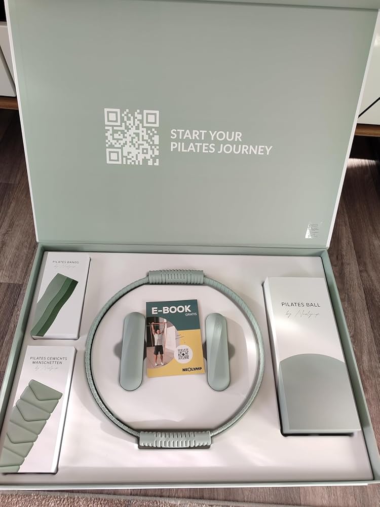 Damit dir nie die Ideen ausgehen, enthält das Set ein exklusives Pilates E-Book mit über 750 Übungen. So findest du immer neue Inspiration für dein Training. Geliefert wird dein Pilates Kit in einer hochwertigen Geschenkverpackung – perfekt für dich selbst oder als besondere Überraschung für Pilates-Fans.