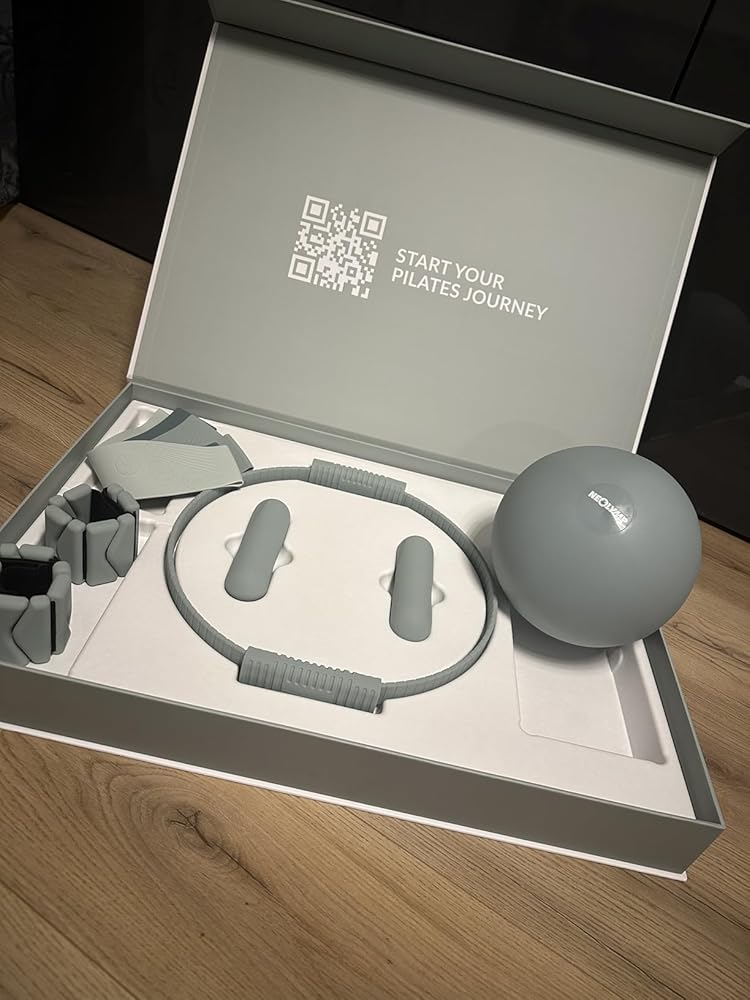 Alle Komponenten bestehen aus langlebigen, SGS-geprüften Materialien – vom extra dicken Pilates Ball über den stabilen Pilates Ring bis zu den anpassbaren Gewichten und Bändern in drei Widerstandsstufen. So kannst du deine Übungen sicher, effektiv und individuell gestalten – ob zum Dehnen, Kräftigen oder für ein intensives Ganzkörper-Workout.